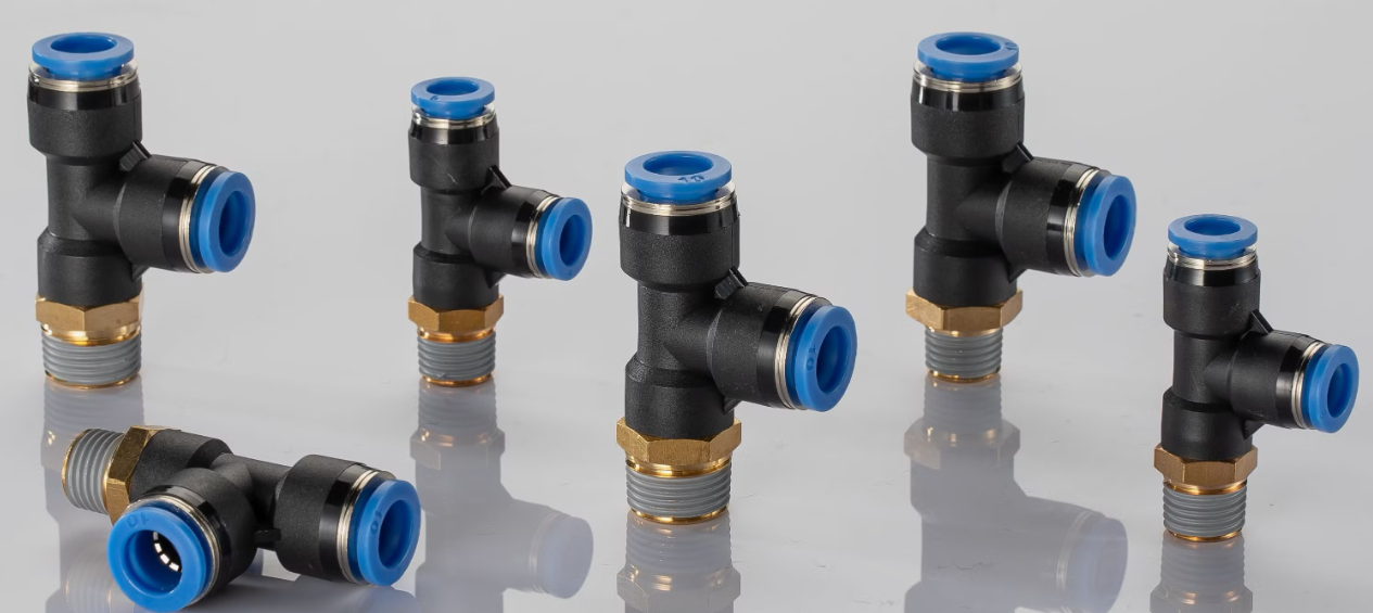 Pneumatické nástrčné fitinky jsou spojovací prvky široce používané v pneumatických systémech, typicky pro rychlé a pohodlné připojení vzduchového potrubí k pneumatickému zařízení. Tyto armatury mají jednoduchý design, snadno se instalují, nabízejí silné těsnění a umožňují rychlé připojení a rozpojení bez potřeby speciálního nářadí. Proto jsou široce používány v různých průmyslových odvětvích, včetně automatizace, výroby strojů, automobilového průmyslu, zpracování potravin a balení. Ať už jde o montáž, údržbu nebo modernizaci zařízení, pneumatické nástrčné fitinky výrazně zlepšují efektivitu práce, snižují prostoje a zajišťují stabilní provoz pneumatických systémů.